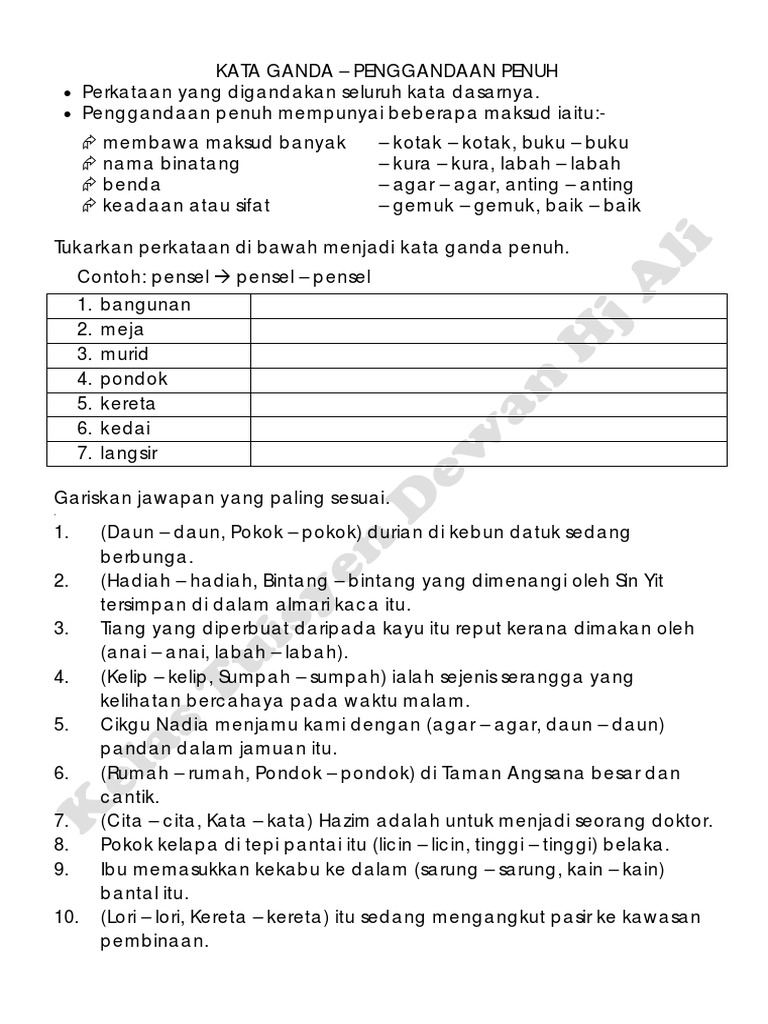 696 x 364 jpeg 61 кб. Savesave latihan kata ganda berentak for later. Isi tempat kosong dengan jawapan yang paling sesuai. Bentuk kata ialah proses pembentukan kata menghasilkan bentuk kata tunggal, bentuk kata terbitan, bentuk kata majmuk dan bentuk kata ganda. Maksud tudung saji yg bersulam.