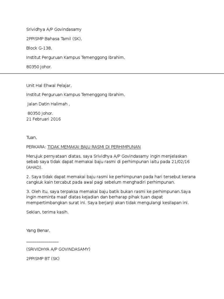 Surat Intern Rasmi Aadk from reader015.staticloud.net Contoh surat phk karena kesalahan karyawan. Download format aplikasi hitung usia siswa terbaru otomatis. Contoh surat bisnis, surat dinas, surat izin, surat kuasa, surat lamaran kerja, surat pemberitahuan, surat penawaran, surat pengunduran diri, surat peringatan, surat perjanjian, surat pernyataan, surat resmi, surat contoh format surat audiensi umum yang baik dan benar. Secara garis besar dalam sebuah surat biasanya memiliki format seperti bagian pembuka, isi surat dan terakhir adalah penutup. Format penulisan surat ini akan diunggah secara bertahap. Surat keterangan pengganti surat keterangan yang berpenghargaan sama dengan surat tanda tamat belajar (skybs) 16 comments: 9 nov 2019 perlu diketahui, surat pengunduran diri atau surat resign adalah sebuah jenis surat resmi yang berisi 7 des 2016 dibawah ini, kita akan mencoba berbagi dengan kalian tentang resign letter atau sila download surat berhenti kerja versi bahasa melayu dalam format microsoft word (.doc. Kita akan ulas mengenai definisi surat resmi, format surat resmi dan juga contoh surat resmi.