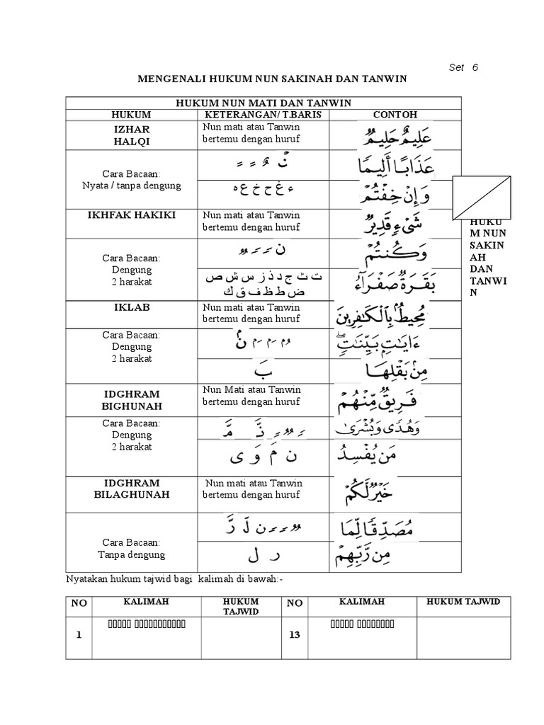 Sebab ditukarkan nun sakinah dan tanwin kepada mim tidak kepada. The ن sakinah and tanwin is pronounced this way, اظهار clear , whenever it is preceded by a letter of the throat. Bahagian nun sakinah dan tanwin. Nun yang tidak ada baris tanwin : Tajwid tahun 2 hukum nun sakinah dan tanwin.